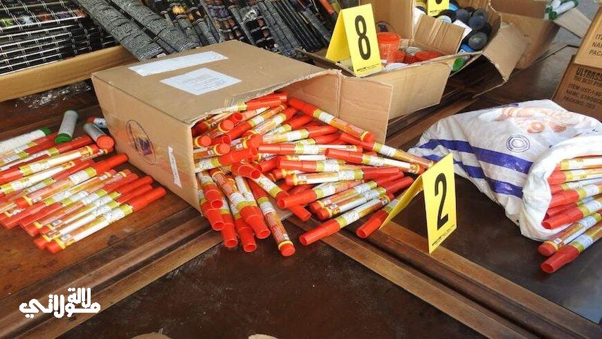 كما ضبط الشخص الثاني بسويقة باب دكالة متلبسا بحيازة 2248 وحدة مفرقعة و48 شهاب ناري تحمل كلها علامات تجارية مختلفة.
