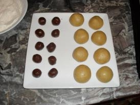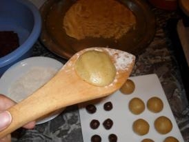 حسب الخليط أنا إستعملت فقط 3 أصفر بيض للحصول على عجينة هشة الحشوة: 250 غ عجينة التمر + 1 ملعقة كبيرة زبدة + نصف ملعقة صغيرة قرفة +1 ملعقة كبيرة ماء زهر لتزيين سكر الصقيل