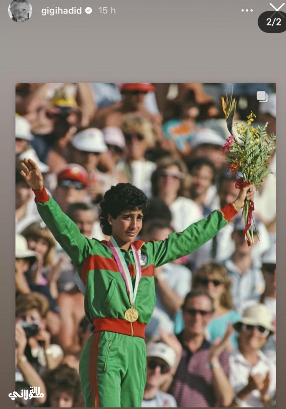 نشرت عارضة الأزياء العالمية من أصول فلسطينية، جيجي حديد، صورة البطلة المغربية السابقة، نوال المتوكل، عبر خاصية الستوري على حسابها الرسمي بموقع تبادل الصور والفيديوهات “إنستغرام”.