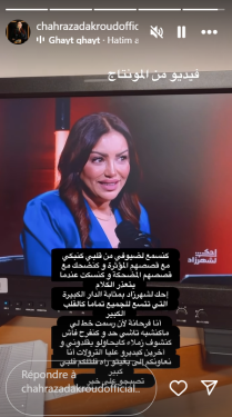 وشاركت شهرزاد عكرود عبر حسابها الرسمي على موقع تبادل الصور والفيديوهات إنستغرام، وبالضبط عبر خاصية القصص القصيرة، صورة لها وأرفقتها بتدوينة كتبت فيها قائلة:”كنسمع لضيوفي من قلبي، كنبكي مع قصصهم المؤثرة وكنضحك مع قصصهم المضحكة وكنسكت عندما يتعذر الكلام.”