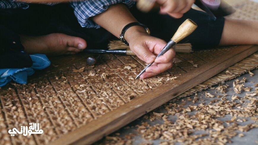 النقش على الخشب هو فن إبداعي ذو قيمة جوهرية تناقلته الأنامل الحرفية بعبقرية منذ القدم، وهو عصارة عبقرية الصانع المبدع، وثمرة ما جادت به قريحته في هذا الفن التقليدي الأصيل. وهو أحد الفنون التي تشتهر بها مدينة سلا، ويتم اعتمادها في المعمار التقليدي يتطلب نوعا من الدقة في العمل والصبر والضبط في الانجاز، حتى يتمكن “المعلم” انجاز الأشكال المرجوة كالأعمدة وتفرشة الأرض والنافورات وتغطية الجدران ومختلف الأشغال الأخرى.