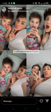 بعد غيابها لفترة طويلة عن مشاركة أي شيء عن موقع تبادل الصور والفيديوهات إنستغرام، ظهرت الفنانة نرجس الحلاق رفقة ابنتها فنة في مقطع فيديو شاركته عبر خاصية القصص القصيرة.