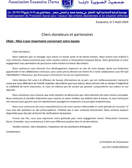 بعد أن أعلن الممثل المغربي العالمي سعيد التغماوي انسحابه من جمعية خيرية لرعاية الأيتام بمدينة الصويرة، بعد تعرضه للنصب والاحتيال، من طرف القائمين على الجمعية، خرجت هذه الاخيرة للرد على ما قاله الفنان في حقها.