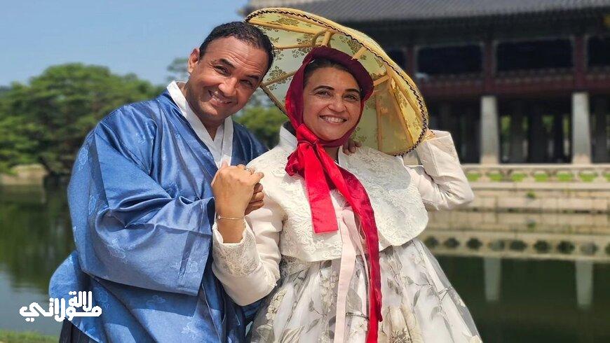 وأرفق رشيد الوالي صورته رفقة زوجته بتدوينة كتب فيها قائلا:”شكرا لمرافقتي وتحملي وكل الحب طيلة 28 سنة، تم الاحتفال بأحد القصور بسيول بلباس تقليدي كوري.”