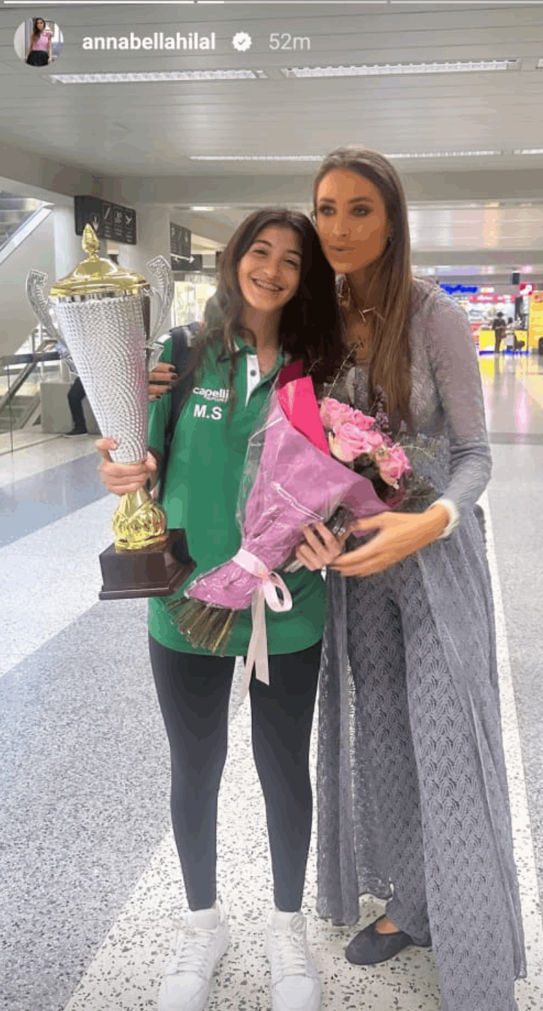 ووثقت انابيلا في الصور استقبالها لابنتها التي عادت الى لبنان بعد مشاركة فريق مدرستها في إحدى المسابقات الرياضية