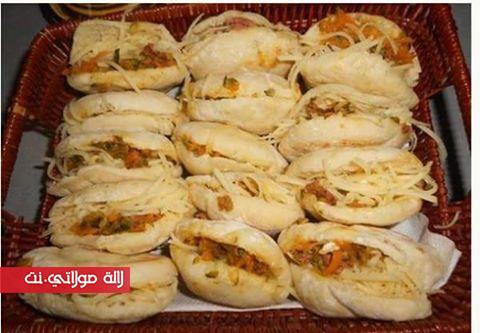 3-ناخد حبة بطبوط نفتحخا قليلا من جانبها نحشوها بالحشوة ونزين بالجبن.