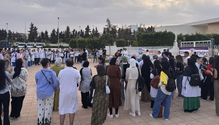 طلبة الطب يعتصمون أمام كلية الطب والصيدلة لمدة 12 ساعة