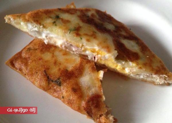 ورقة البسطيلة مفزكة في الحليب مخلط مع بيضة و نصف كاس زيت .