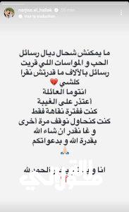 وأوضحت أنها لم تتمكن من قراءة جميع الرسائل نظرا للعدد الهائل منها، قائلة: “ما يمكنش شحال ديال رسائل الحب والمواساة الي قريت، رسائل بالآلاف ماقدرتش نقرا كلشي.. أنتوما عائلتي وأعتذر عن الغيبة، كنت فقط في فترة نقاهة، كنت كنحاول نوقف مرة أخرى وغانقدر إن شاء الله بقدرة الله وبدعواتكم.. أنا وبناتي بخير الحمد لله”.