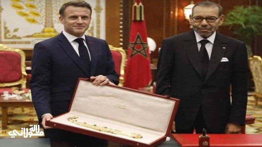 استقبل الملك محمد السادس، مساء الاثنين، الرئيس الفرنسي إيمانويل ماكرون وزوجته بريجيت في العاصمة المغربية الرباط، حيث شهد هذا الاستقبال حضور ولي العهد الأمير مولاي الحسن، والأمير مولاي رشيد، والأميرة للا خديجة، والأميرة للا مريم. وقد أضفى هذا اللقاء طابعا خاصا، حيث قام الملك بتقديم هدية فريدة للرئيس ماكرون، تمثلت في خنجر مغربي مطلي بالذهب ومرصع بالأحجار الكريمة، مما يعكس عمق العلاقات التاريخية والثقافية التي تربط بين المغرب وفرنسا، كما أن هذه الهدية تحمل رمزية كبيرة تعكس التقدير المتبادل بين البلدين.