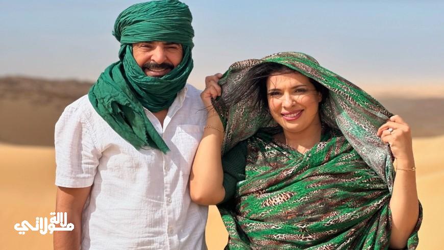 رفقة زوجها الفنانة مونية لمكيمل تنال إعجاب متابعيها بالمحلفة الصحراوية