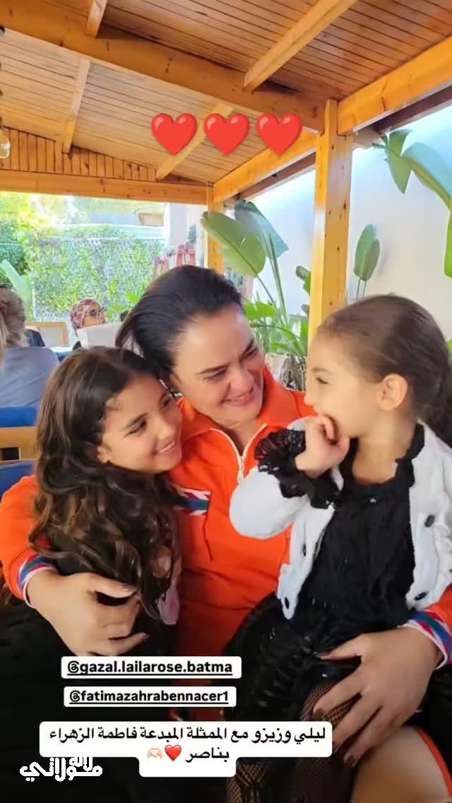 في هذه الصور، بدت الأجواء مليئة بالمرح والسرور، حيث ظهر الأطفال برفقة فاطمة الزهراء وهما يستمتعان بأوقاتهن معا. وقد قامت فاطمة بالتعليق على إحدى الصور قائلة: “ليلى وزيزو مع الممثلة المبدعة فاطمة الزهراء بناصر”، مما يعكس الود الذي يجمع بينهن ويظهر اللحظات العفوية التي تمتعت بها العائلة.