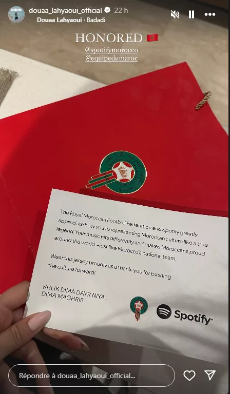 هدية مميزة من المنتخب المغربي تتلقاها الفنانة دعاء اليحياوي