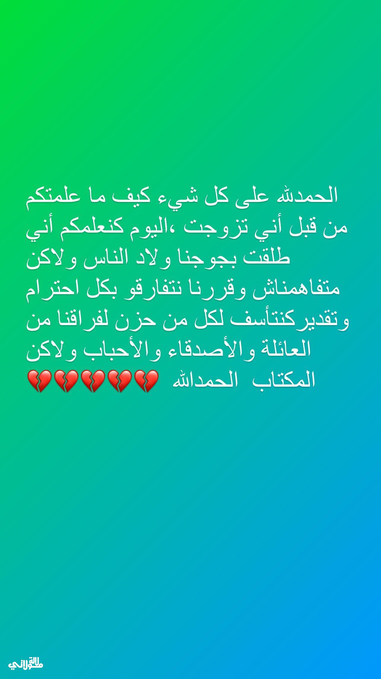 كتبت شيماء قائلة: “الحمدلله على كل شيء، كيف ما علمتكم من قبل أني تزوجت، اليوم كنعلمكم أني طلقت، بجوجنا ولاد الناس ولكن متفاهمناش وقررنا نتفارقو بكل احترام وتقدير”.