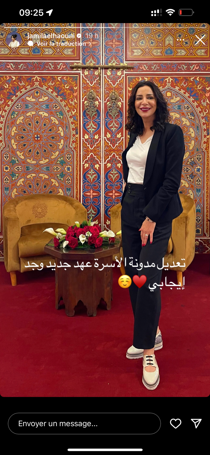 عبّرت الممثلة المغربية جميلة الهوني عن دعمها للمقترحات الجديدة المرتبطة بتعديل مدونة الأسرة المغربية، وجاء ذلك عبر منشور شاركته عبر خاصية “الستوري” على حسابها الرسمي في تطبيق “إنستغرام”، حيث أشادت بأهمية هذه الخطوة في تعزيز حقوق الأمهات والأبناء وضمان مستقبل أفضل لهم.