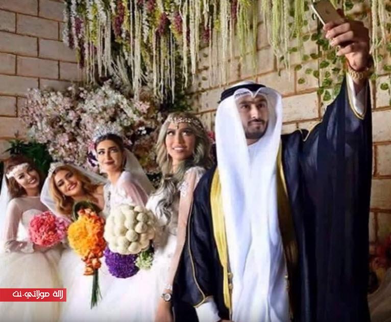انتشرت على الشبكات الاجتماعية صورٌ وفيديوهات تجمع شاباً يرتدي لباساً خليجياً تقليدياً رفقة 4 عرائس، لتنطلق بعدها التكهنات حول زواجه الغريب من أربع فاتنات دفعةً واحدة.