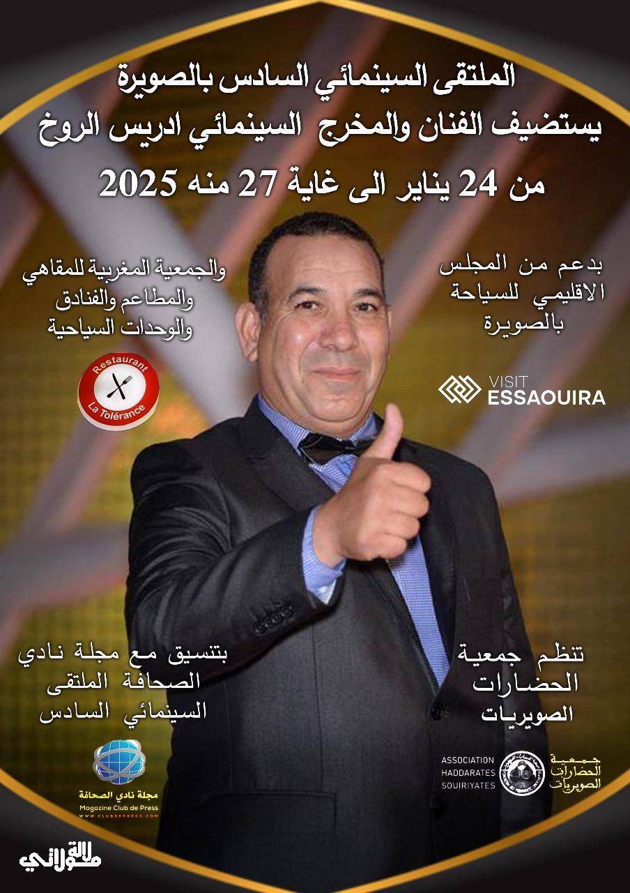 تستعد مدينة الصويرة لاستقبال الدورة السادسة من الملتقى السينمائي، والذي سينطلق في 24 يناير الجاري ويستمر حتى 27 منه. هذا الحدث السينمائي المميز يأتي بدعم من المجلس الإقليمي للسياحة بالصويرة والجمعية المغربية للوحدات الفندقية والمقاهي والمطاعم، حيث سيجمع نخبة من أبرز رواد الفن السابع في المغرب. من أبرز المشاركين في هذه الدورة المخرج والفنان إدريس الروخ، الذي سيحظى بتكريم خاص خلال فعاليات الملتقى.