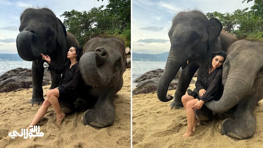 صور الفنانة مع الفيلة على شاطئ البحر جاءت بمثابة تذكير للجمهور بجمال الحياة عندما نتوقف لنقدر التفاصيل الصغيرة.
