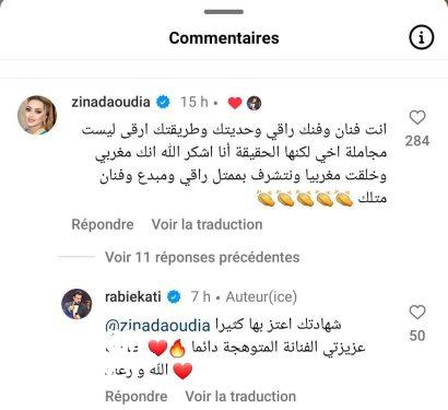 من جهته، لم يتردد ربيع القاطي في الرد على كلمات زينة الداودية، حيث عبر عن امتنانه الكبير لهذا الإطراء الذي حمل الكثير من التقدير والاحترام. وأكد القاطي في رده أن هذه الشهادة من فنانة كبيرة مثل زينة الداودية تمثل له فخرا واعتزازا كبيرين. ووجه إليها كلمات مليئة بالإعجاب، مشيدًا بتألقها الدائم في عالم الفن.