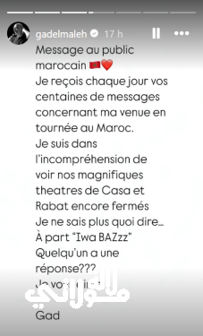 في رده على محبيه عبر حسابه الشخصي على “إنستغرام”، أكد جاد المالح أنه ليس هو من يتحمل مسؤولية هذا الغياب عن المغرب. فقد عبّر عن استغرابه بسبب عدم إدراج مدينتي الدار البيضاء والرباط في جولته الكوميدية رغم جمال المسارح فيهما. كما أشار إلى أنه لا يعرف كيف يفسر هذا الوضع محيراً، بعد أن لاحظ استمرار إغلاق المسارح في هاتين المدينتين، وهو ما أضاف مزيداً من الإحباط لديه، خاصة مع تزايد الرسائل التي يتلقاها من جمهوره في المغرب.