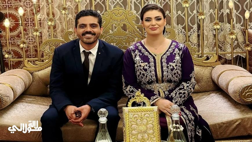 وقد نشرت لجزولي الصورة عبر حسابها الرسمي على منصة إنستغرام، حيث بدت بإطلالة أنيقة متألقة بقفطان مغربي باللون البنفسجي المطرز، وهو لون يعكس الفخامة والرقي. أما أيوب أبوالنصر، فقد ظهر ببدلة رسمية سوداء زادت من جاذبية المشهد، وسط ديكور فاخر مستوحى من التقاليد المغربية الخاصة بحفلات الزفاف، مما جعل اللقطة تبدو وكأنها جزء من احتفال حقيقي .
