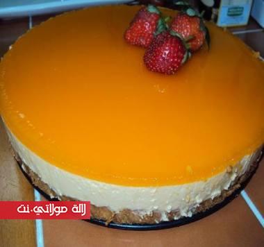 يخدم الكيري والسكر حتى تصبح لينة ويضاف الياغورت مع التطريب ثم الكولي ثم الجيلاتين ثم الكريمة يخلط الكل جيدا حتى ينسجم ويصب على قاعدة الكيكويدخل الفريزر 3 ساعات ويصب على وجهه كولي المانجو المكونمن