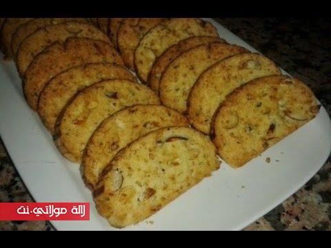 يخفق البيض جيدا يضاف اليه الزيت والسكر نخفقة جيدا ثم يضاف اليهم الزبيب واللوز ثم نمزج معهم الطحين الى ان يتم الحصول على عجينة لينة تعرك العجينة جيدا ثم تقسم الى كويرات بحجم البرتقالةوتحول الى قطبان توضع في صفيحة مدهونة توضع في الفرن نصف الطهي بعد ان تبرد تقطع الى فقاص رقيق يحمر في الفرن الى ان يتورد لونه