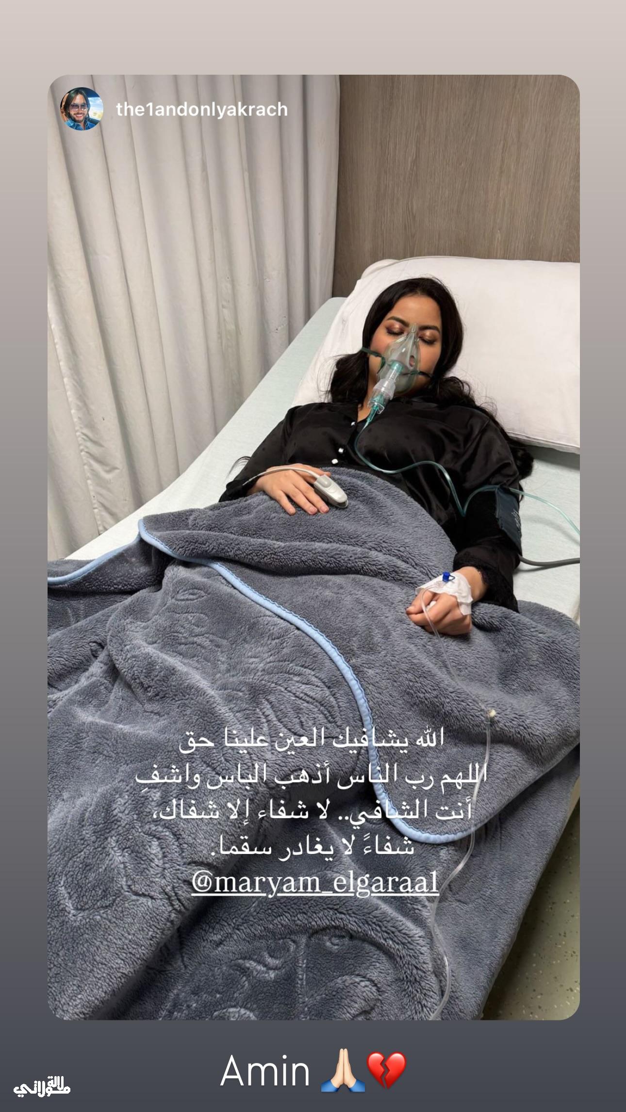 وفي هذا السياق، لم تتأخر مريم الكرع في طمأنة جمهورها، حيث نشرت إحدى صديقاتها صورة لها على حسابها الشخصي وهي في وضعية الاستلقاء داخل أحد المصحات في مدينة الدار البيضاء. هذه الصورة أثارت الكثير من الأسئلة من متابعيها، الذين أبدوا قلقهم من حالتها الصحية المفاجئة. كما عبر عدد من محبيها عن تعاطفهم معها من خلال التعليقات والدعوات لها بالشفاء العاجل.