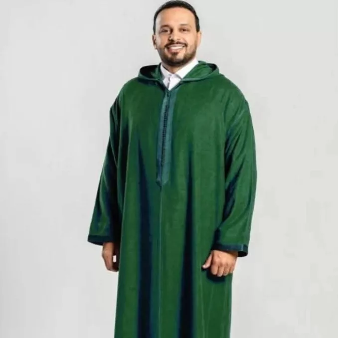 تعتبر الجلابة من أبرز قطع الملابس التي يرتديها المغاربة في المناسبات الرسمية والعيدية، حيث تشتهر بتصاميمها الفاخرة وقماشها المريح. اختار هيثم مفتاح اللون الأخضر لجلابته، وهو لون يعكس التفاؤل والبهجة، ويعتبر من الألوان المحبوبة في الثقافة المغربية. تعكس هذه الإطلالة تميز هيثم في اختيار ملابسه، حيث يحرص على أن تكون إطلالاته مناسبة للأحداث والمناسبات، وتتماشى مع التراث المغربي الأصيل.