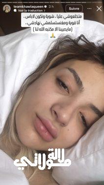ورغم الحالة الصحية الصعبة التي تمر بها، حرصت خولة على طمأنة متابعيها من خلال صورة شاركتها وهي بوجه منتفخ وعلقت عليها برسالة مؤثرة حملت في طياتها الكثير من الأمل والصبر، حيث كتبت قائلة: “متخلعوشي عليا، شوية ونكون لاباس، أنا قوية ومغنستسلمش لهادشي.. لا يصيبنا إلا ما كتبه الله لنا”، وهي الكلمات التي لاقت تفاعلا واسعا ودعما كبيرا من قبل متابعيها ومتابعاتها.