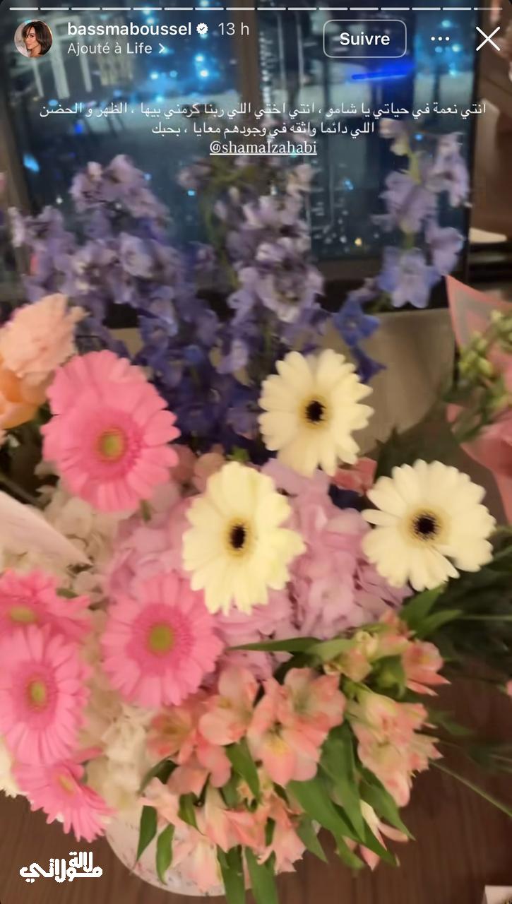 وما زاد من جمال تلك اللحظة هو أن بسمة بوسيل أعادت نشر مقطع فيديو يظهر باقة ورد جميلة تلقتها من شام الذهبي، مرفقة بصورة لها مع الجائزة التي فازت بها في حفل “أيمي غالا”. تعبير بسمة بوسيل عن امتنانها لصديقتها جاء مليئًا بالعاطفة والصدق، حيث كتبت: “انتي نعمة فحياتي يا شامو، انتي أختي اللي ربنا كرمني بيها”.