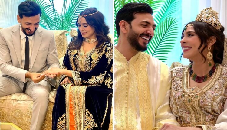 وتألقت الفنانة فاطمة الزهراء بلدي في تلك الليلة بقفطان مغربي فاخر بلون أبيض عاجي، تميز بتصميم راقٍ يعكس أنوثتها الهادئة، فيما اختار حمزة الفاضلي الظهور ببدلة كلاسيكية سوداء أنيقة أضفت لمسة من الرقي والفخامة، مما أظهر التناغم البصري بين العروسين وجذب الأنظار إلى أناقتهما.