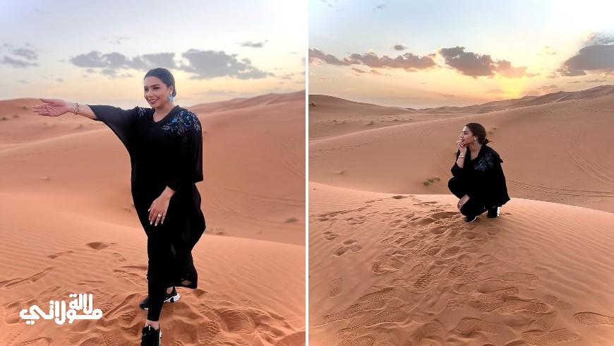 ومن بين الصور التي نشرتها، تلك التي ظهرت فيها رفقة نجلها وسط الكثبان الرملية، حيث أضفت هذه اللحظات لمسة إنسانية وعائلية نالت استحسان محبيها. وظهر الانسجام واضحاً بين الفنانة وابنها، وهو ما منح الصور طابعاً دافئاً ومليئاً بالمشاعر، خاصة في ظل الخلفية الصحراوية التي تعزز جمال اللقطات.