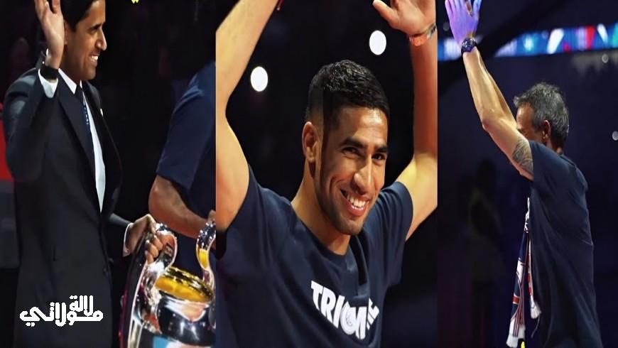 استقبال مهيب لأشرف حكيمي وفريق باريس سان جيرمان بعد التتويج بدوري أبطال أوروبا