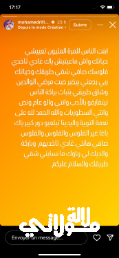 وفي نفس السياق، استحضر محمد الريفي أهمية التنشئة السليمة، وكتب قائلا: “الحمد لله على نعمة التربية، واليدينا تيلعبو دور كبير”، في إشارة إلى الفضل الكبير الذي يعود للأهل في غرس المبادئ وتثبيت الأخلاق لدى الأبناء.