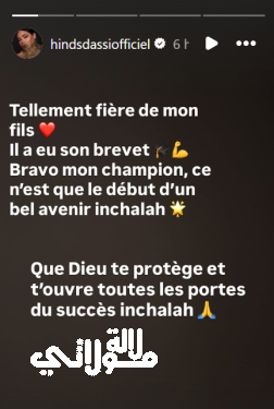 أعربت الفنانة المغربية هند السداسي عن اعتزازها الكبير بنجلها بعد أن تمكن من اجتياز امتحاناته الدراسية بنجاح، حيث شاركت جمهورها لحظة الفرح هذه من خلال منشور عفوي عبر حسابها الرسمي على تطبيق إنستغرام.