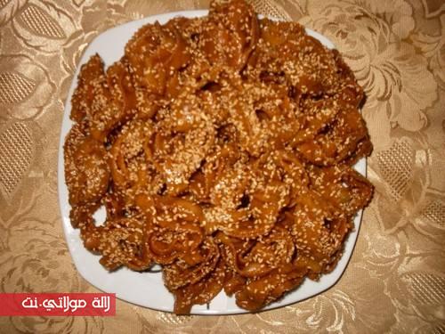 زلفة جنجلان زلفة لوز معلقة نافع معلقة هبت حلاوة شوية كوزة شوية مسكة حرة ضمة زعفران صغيرة شوية خميرة ديل خبز شوية زعفران لحر شوية ملح كاس زبدة لعنبة لكبير كاس زيت بلدية مخلط مع زيت العادية رباع كاس خل 2 قراعي ديل ماء زهر 2 كلو دقيق لتزين عسل زنجلان او زيت للقلي روح زهر