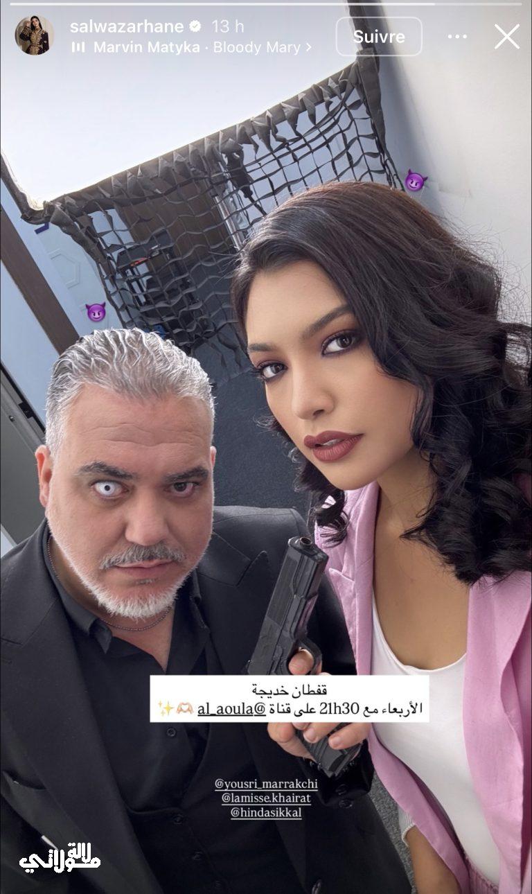 شاركت الممثلة المغربية متابعيها صورة جمعتها بزميلها يسري المراكشي، مرفقة بتعليق حددت فيه موعد عرض الحلقة الأولى: “قفطان خديجة، الأربعاء الساعة التاسعة والنصف مساء على قناة الأولى”.