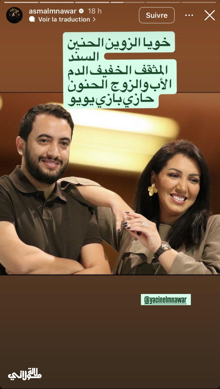 ونشرت لمنور التفاصيل عبر خاصية “الستوري” على حسابها الرسمي في “إنستغرام”، مرفقة بتعليق مؤثر جاء فيه إشادة كبيرة بشقيقها ووفاء واضحا لعلاقتهما: “خويا الزوين الحنين السند المثقف الدم الأب والزوج الحنون حازي بازي يويو”.