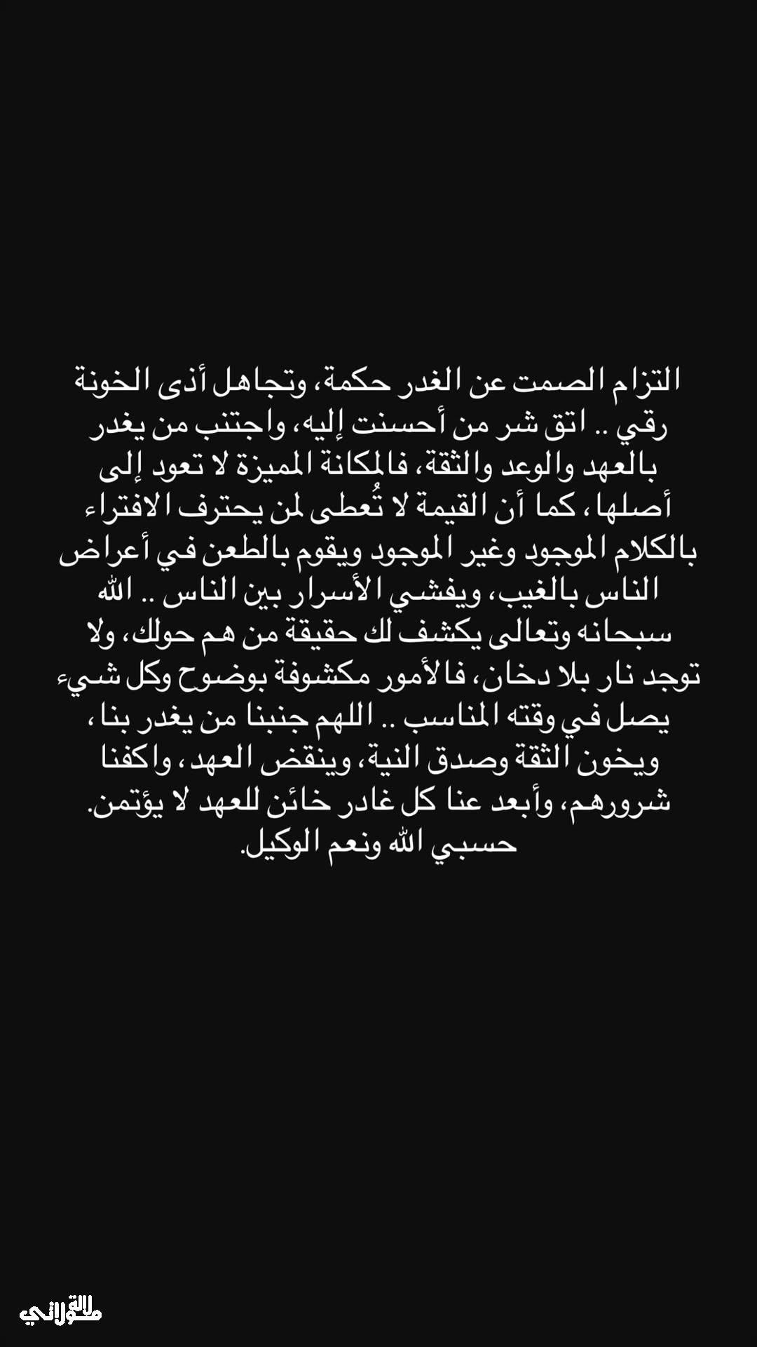 وأوضحت بوحموش في نصها المطول أن الالتزام بالصمت تجاه من يخون العهد ويرتكب الأذى يعد علامة على الحكمة والنضج، مشيرة إلى أهمية الحذر ممن أسديت إليهم المعروف، لأن بعض الأشخاص قد يخونون الثقة ويفشون الأسرار وينطقون بما لا ينبغي عن الآخرين، مؤكدة أن الله وحده كفيل بكشف الحقائق ونوايا الناس الخفية.