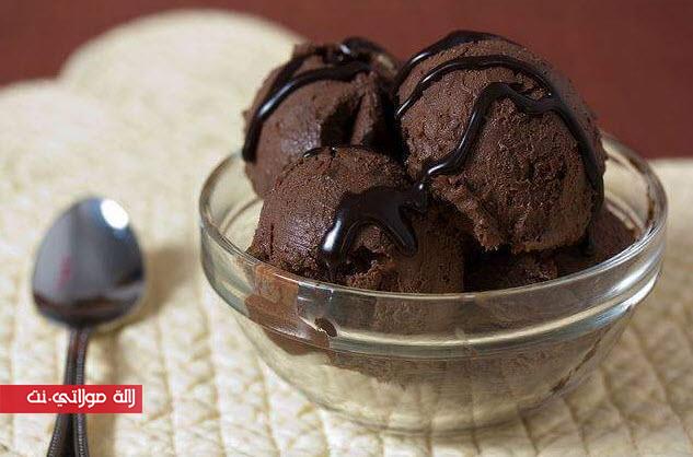نصف لتر من الكريمة نطربوها مع 3 م ك من شوكولاتة الدهن و 150 ملل من الحليب المركز و نضعه في المجمد