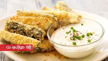 تحضير أصابع القرع الأخضر بالجبن مع الصلصة