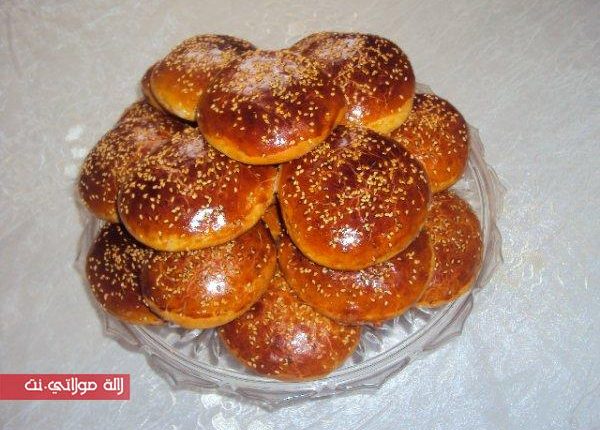 نغطيوهم بمنديل لمدة ساعة من بعد ندهنوهم (ببيضة مخلطة مع شوية ديال الحليب ندخلوهم الفران تكون العاقية متوسطة (نضع اللاطة في الاول فوق العافية ملي تطيب من تحت نزلوهم باش يتحمرو من فوق.