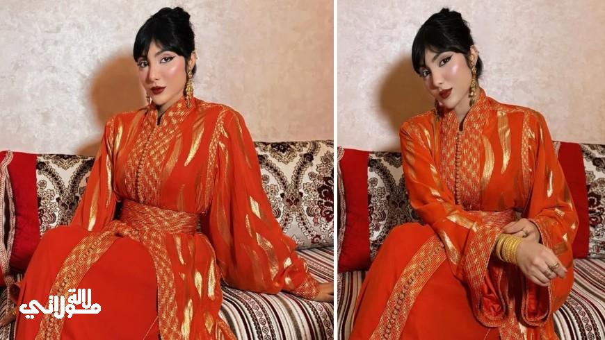 قدمت الفنانة المغربية إيمان بطمة لجمهورها إطلالة مميزة اعتمدت فيها تكشيطة مغربية فاخرة باللون البرتقالي، حيث جاءت مزينة بزخارف ذهبية تضفي لمسة فخامة على التصميم وتبرز جمال القماش ولمعانه.