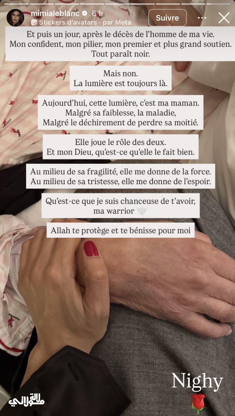 تقاسمت صانعة الحلي المغربية مريم الأبيض المعروفة باسم Mimia Leblanc مع متابعيها مشهدا دافئا جمعها بوالدتها عبر صور عائلية رافقتها كلمات صادقة تعكس الامتنان والحنان. وجاءت هذه المشاركة لتبرز مكانة الأم في حياتها عقب رحيل والدها في فترة مشحونة بالمشاعر والتحولات.