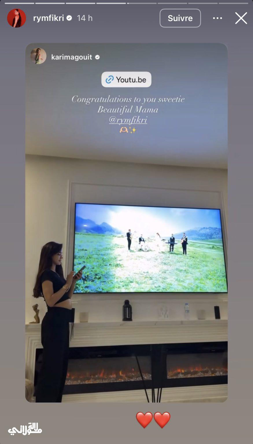 وعمدت غيث إلى نشر مقطع من أحدث عمل فني لفكري من خلال خاصية القصص القصيرة على حسابها الرسمي بموقع Instagram، إذ ظهرت ريم في هذا العمل بإطلالة كشفت من خلالها عن حملها لأول مرة بشكل علني، كما أرفقت المنشور بعبارة تهنئة حملت كلمات رقيقة تعبر عن فرحتها، حيث خاطبتها بمحبة ووصفتها بالأم الجميلة، وهو ما أضفى على الرسالة طابعا إنسانيا دافئا.