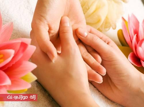 نمزج جميع العناصر مع بعض جيداً ثم توضع على اليدين و نعملو ڭوماج لطيف بحركات دائرية ناعمة و نركز على المناطق لي كتشد السواد مثلاً الأظافر و الجلد المحيط بها يتڭوما جيداً و كل منطقة يظهر بها السواد في اليدين .