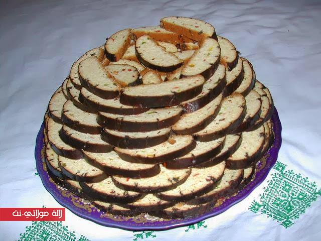 بعد اخراجها من الفرن ندهنها بالشكلاط الاسود الذائب