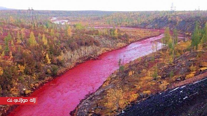 صادم بالصور.. نهر روسي يتحول إلى لون الدم