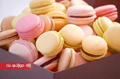 نقشر ورقة الخبز من الماكرون ونضع جانباً.